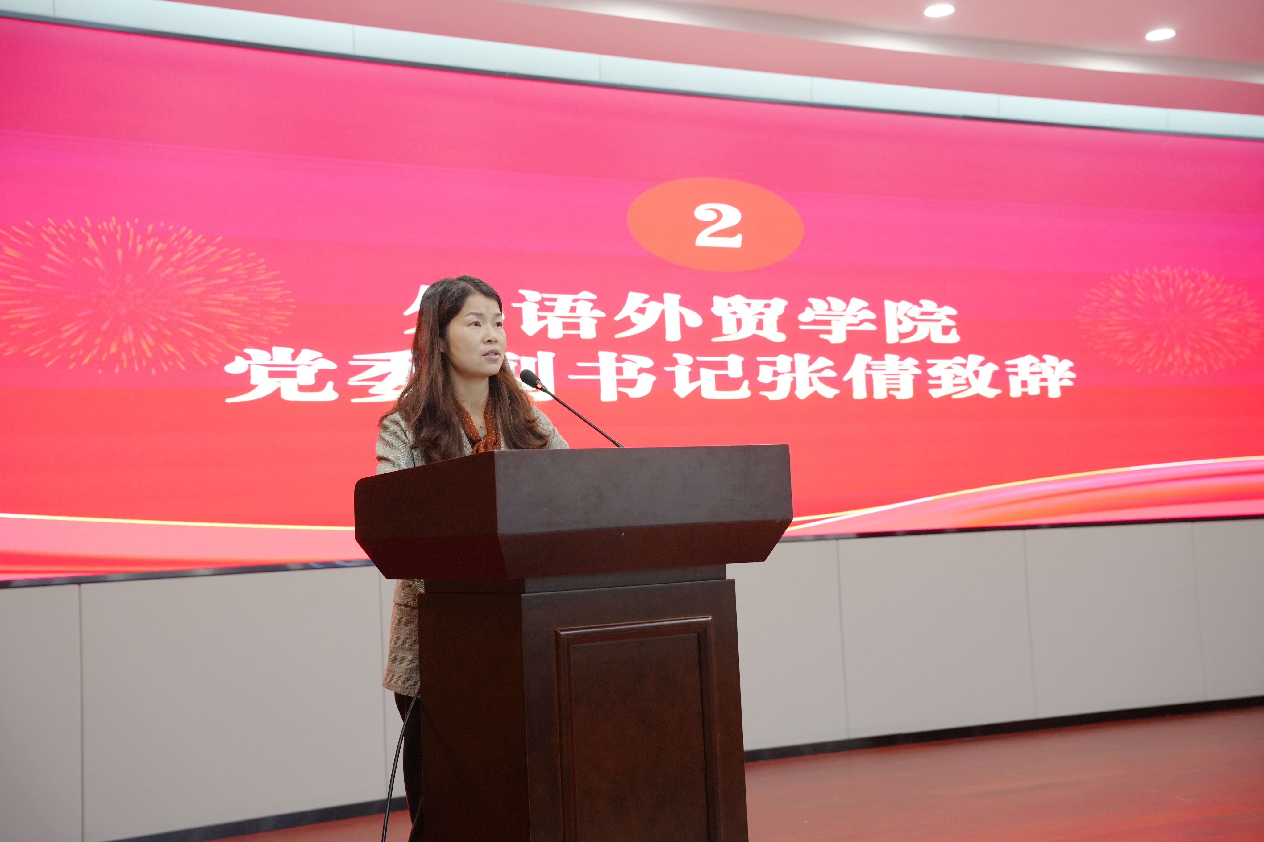 2025年10月17日18:30,外语外贸学院第二十次学生代表大会在产教大楼三楼报告厅隆重召开。本次大会由国贸233班高嘉庆主持,学院党委副书记张倩、全体辅导员及全体学生代表齐聚现场,共赴这场青春盛会。