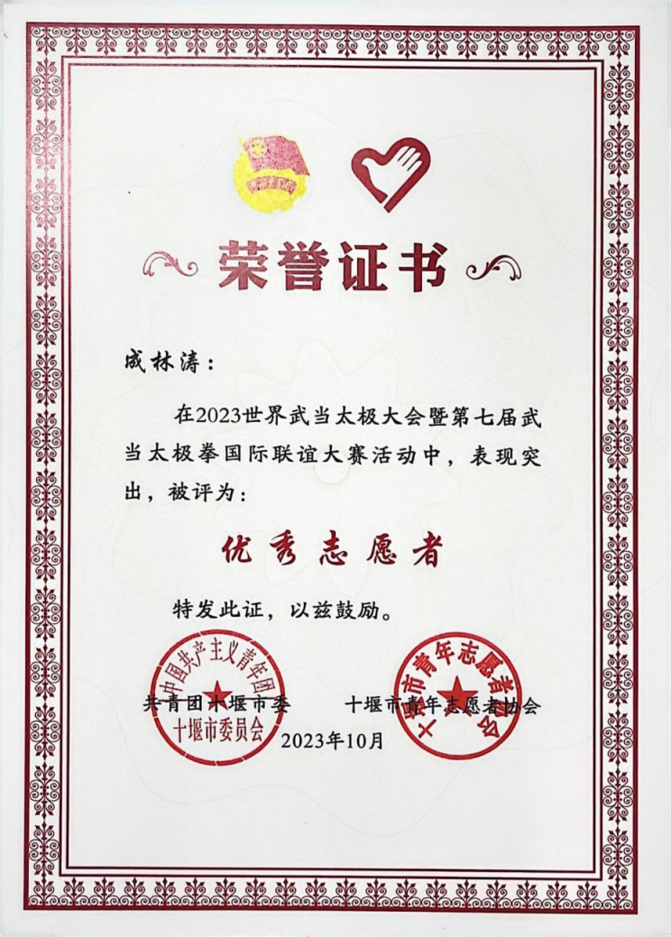 在学生工作与志愿服务的赛道上,成林涛始终以饱满的热情践行责任,用行动传递温暖力量。担任学生会主席期间,他以“服务同学、建设校园”为目标,统筹策划外语外贸文化节、英语四六级分享会等多项校园活动,始终把倾听同学需求、解决实际问题作为工作出发点。在志愿服务方面,他积极投身志愿服务,累计时长达到 428 小时,曾参与世界武当太极大会、中国低空经济发展大会等多项志愿服务活动。学生工作的统筹协调与志愿服务的无私奉献,不仅让他深刻理解了责任与奉献的内涵,更锤炼了他的沟通能力与社会责任感。