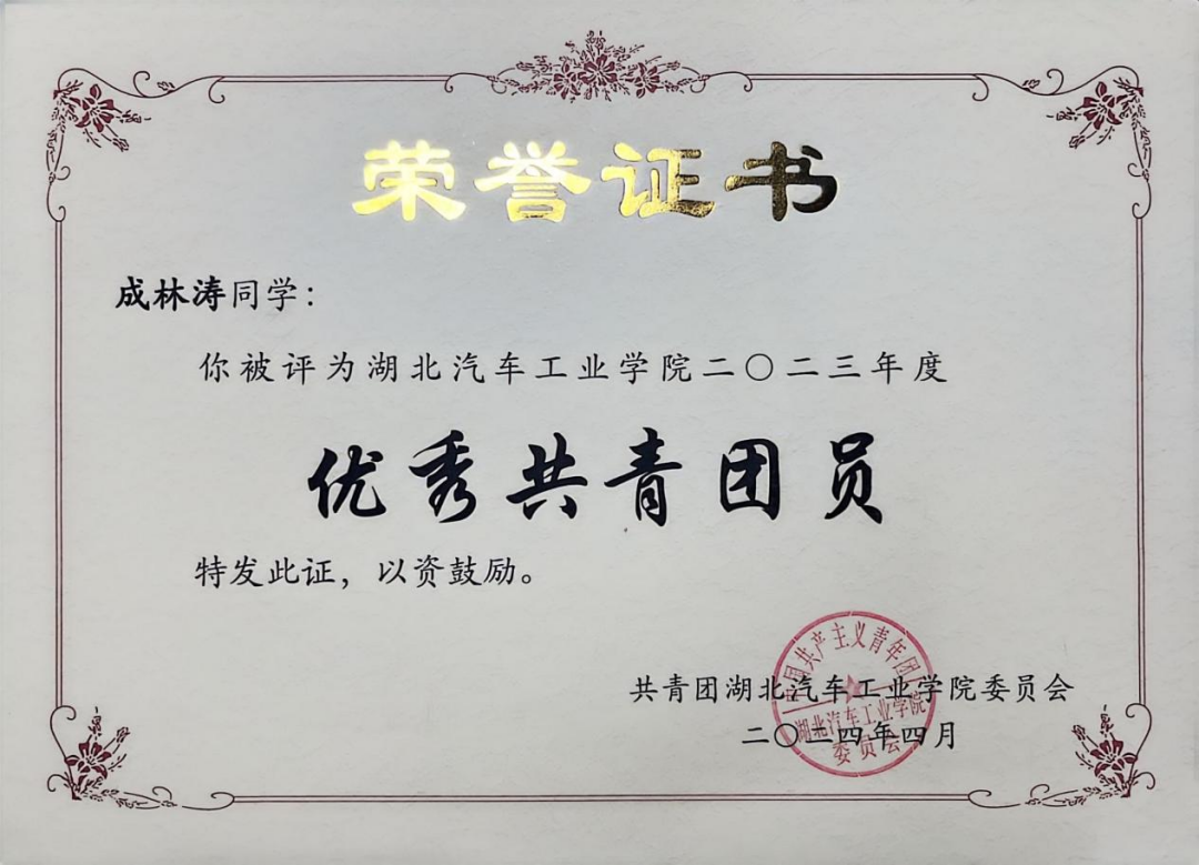作为一名中共预备党员,成林涛始终将思想建设摆在首位,以坚定信仰引领行动方向。他主动参与各类理论学习活动,深入领会党的创新理论,在红色教育实践中锤炼党性修养,将“为人民服务”的宗旨融入日常。作为学生干部,在学生工作中,他积极履责、勇于担当,能出色完成各项学生工作;在班级与校园中,他积极发挥党员先锋模范作用,带头遵守校纪校规,主动帮扶学业有困难的同学,分享专业学习方法与经验,助力班级形成“互帮互学、共同进步”的良好学风,用实际行动践行党员的责任与使命。